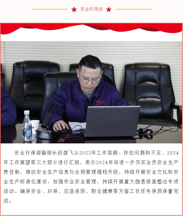 12月22日,公司召开2023年事情总结及2024年事情计划务虚会,回首总结2023年事情完成情况,谋划研究2024年事情目标、事情重点、事情举措。公司在家领导班子成员、中层治理干部加入集会。